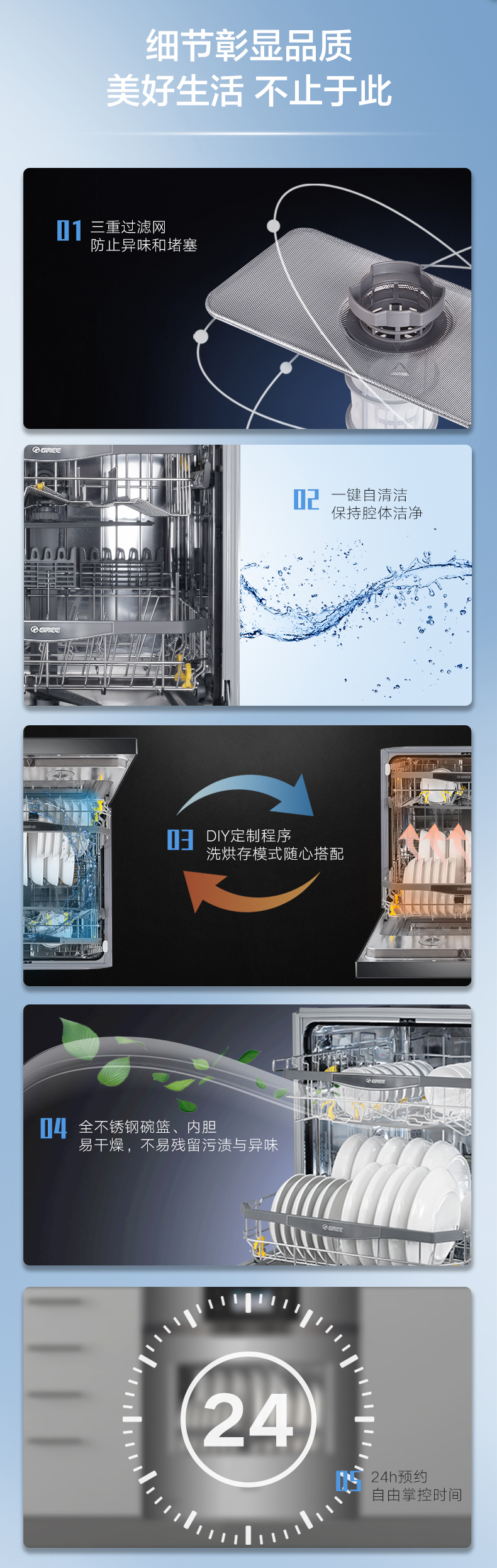搭載雙擎熱烘干科技,除菌又除味;洗烘存一體,智能臟污識別,除菌率達99.99%
